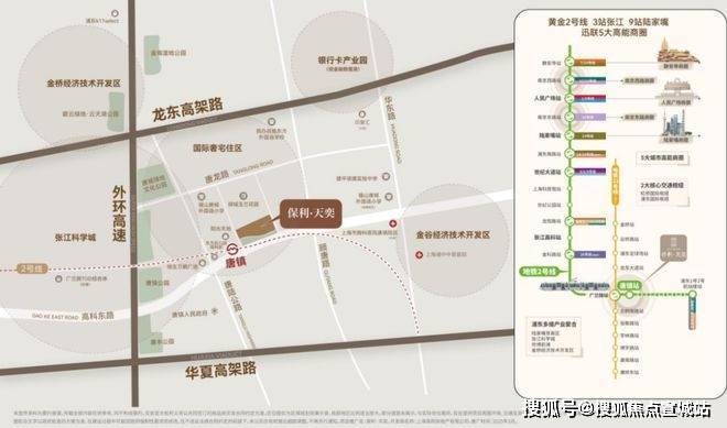 2、无短板的资源配套,眼见为实的确定性:保利天奕与2号线唐镇站直线距离仅150米,是真正的正地铁盘,占据唐镇核心位置,坐拥商业、教育、地铁、绿地优质配套。
