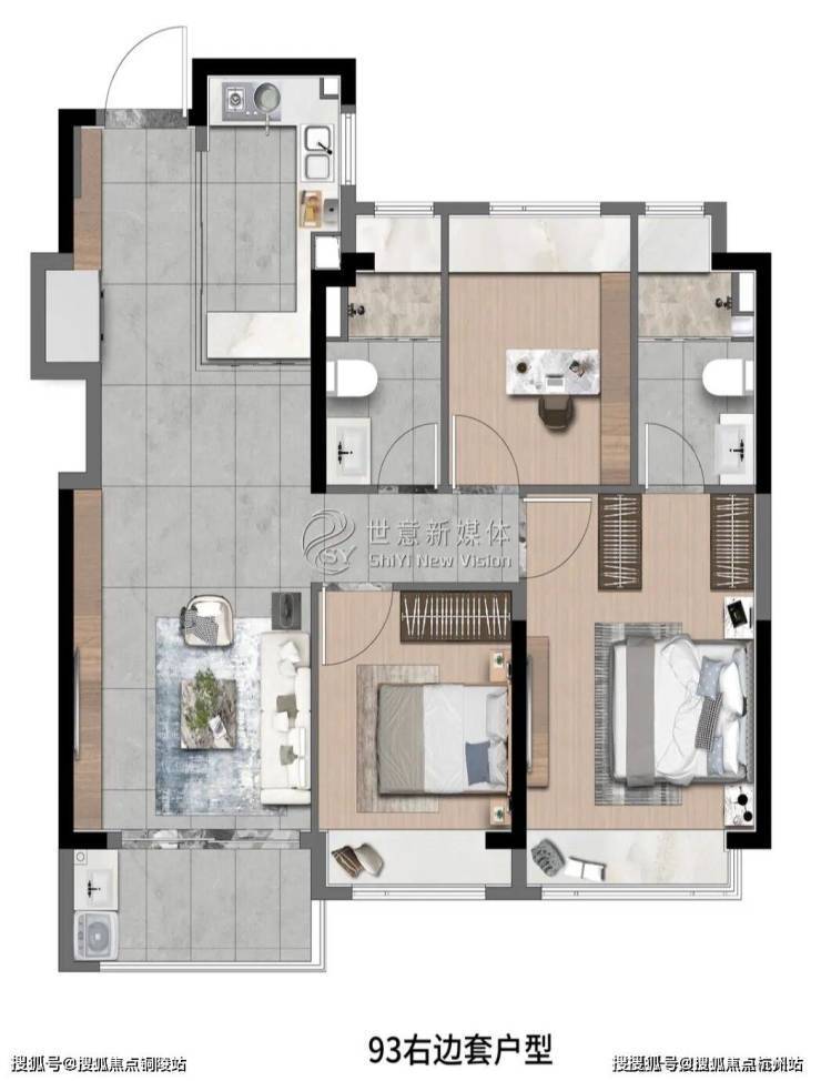 象屿深入考量空间与场景的运用,将生活中看得见与看不见的细节进行了细致打磨。玄关、阳台、厨房、卫浴均设置科学收纳空间,营造高品质生活体验的同时,更带给居者层建面约83㎡3房2厅1卫