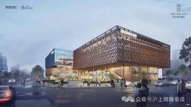 整体建筑立面一二层基座部分为石材,三层及以上主体部分以玻璃+铝板幕墙为主。光感幕墙、立体边框、晶体塔冠,建筑整体效果现代精致,契合当代艺术美学。