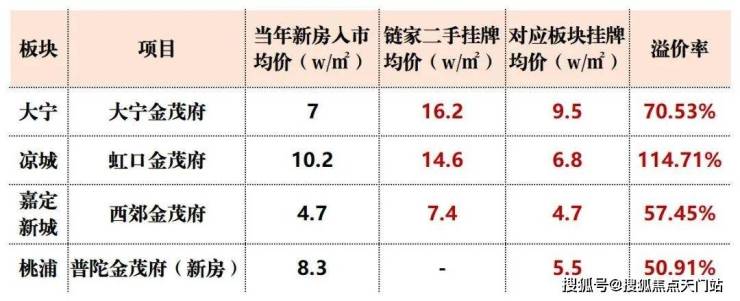 据贝壳数据统计, 金茂府与同板块二手房相比,挂牌均价比板块均价高出50%以上,最高溢价甚至突破114.71%!