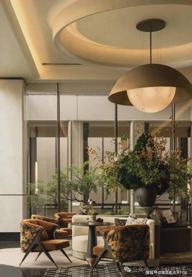 一汪深邃的 「宇宙之心」漩涡水景,灵感源自梵蒂冈博物馆举世闻名的双螺旋楼梯,模仿宇宙星系流转的宏大景象,纳藏天地万物生生不息的力量。