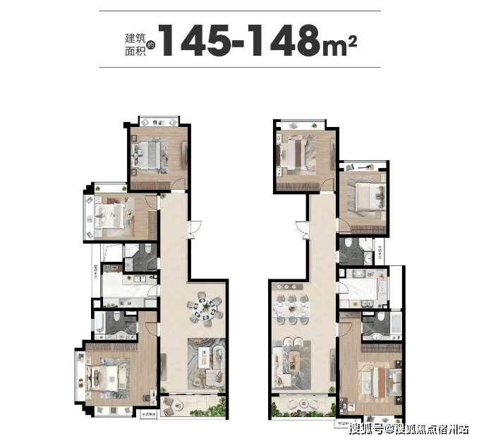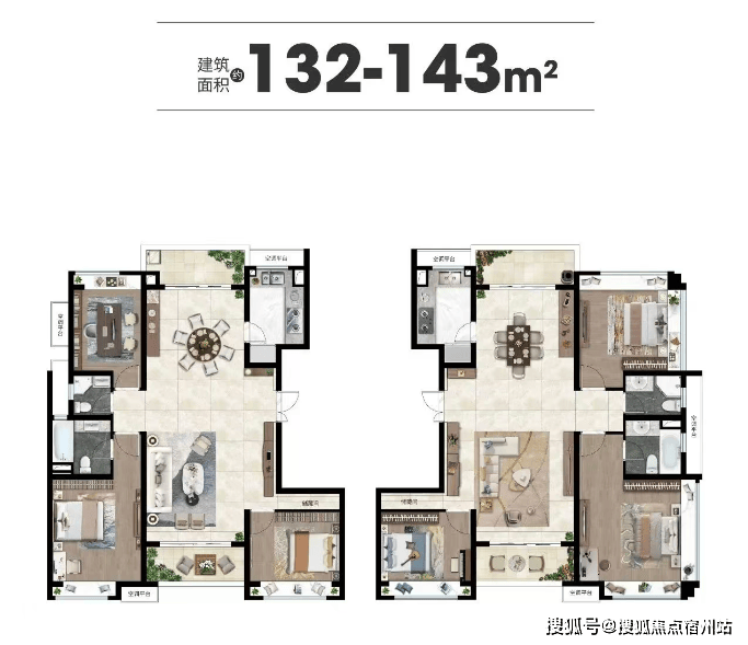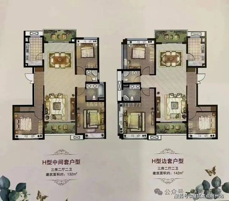 【御沁园】七期将推出3栋18F高层住宅,两梯两户无连廊设计;将推建面约132~172㎡三房户型,其中: