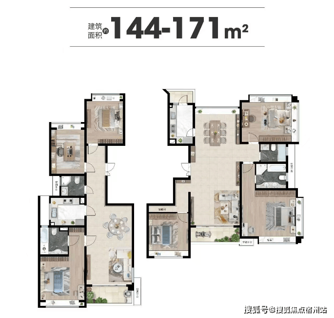 全卧室飘窗,边套主卧 270° 采光,得房率约 85%