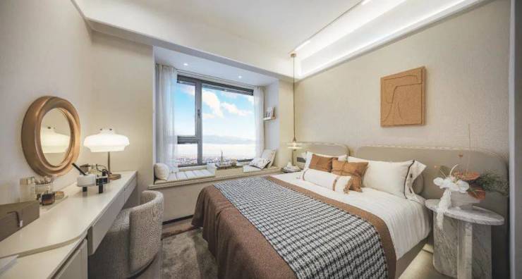 很多人看过了市面上类似面积段的三房后都会觉得空间略感局促,家具摆放也存在较大问题。这款户型得益于更高的得房率,以及充裕的宽度,不论是客厅还是卧室,都能有更好的空间。