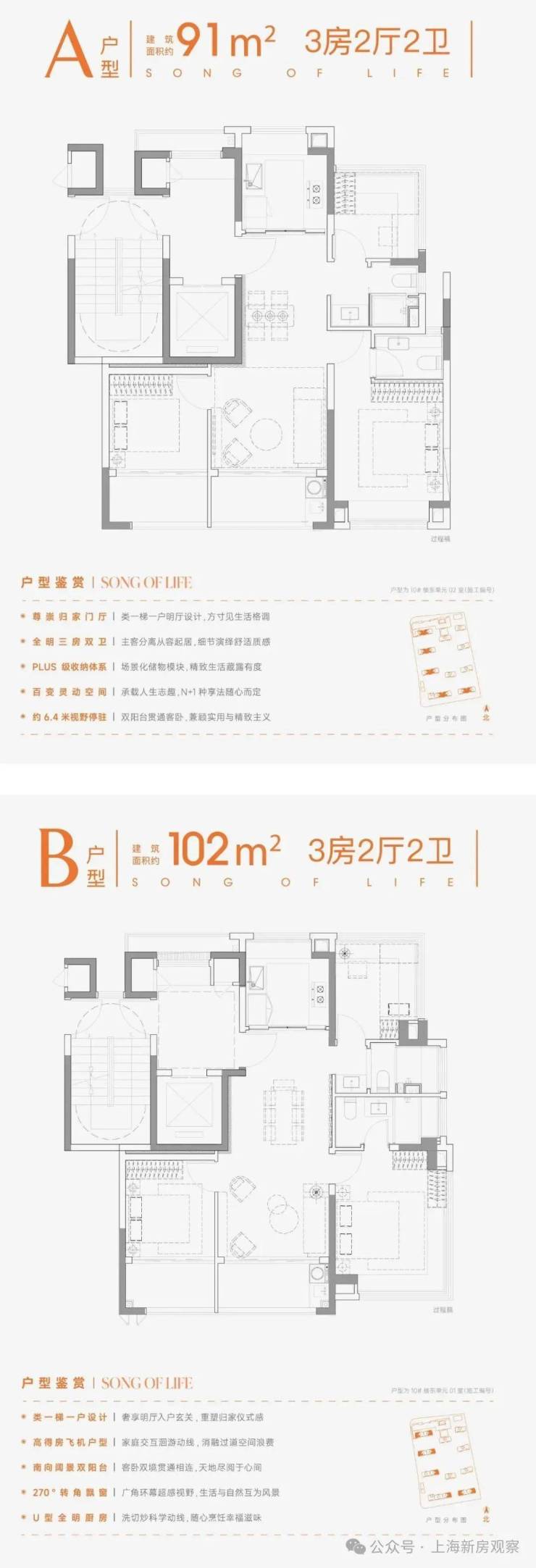 「保利虹桥和颂售楼处电话:400-1010-064☎☎」建面约99㎡3房2卫户型不仅保留三开间朝南和餐客厅一体化的优势,更在尺度上大踏步进阶。主卧面宽高达约3.7米,客厅面宽高达约3.75米,适配有尺度改善需求的客户,而市面上同面积段产品尺度基本为客厅面宽约3.5米,主卧约3.3米。