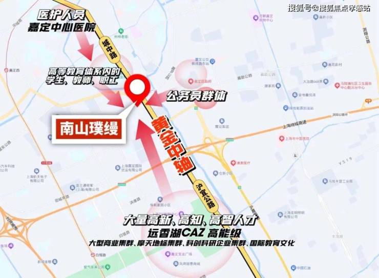 而在嘉定,主轴只有一条:城中路-沪宜公路-嘉闵高架组成的烫金主轴。