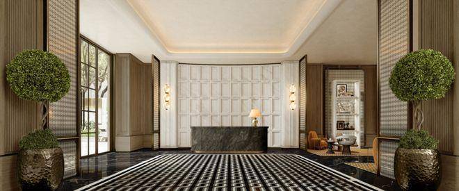 例如入户玄关铺设有“石材皇后”鱼肚印象,这种级别的奢石在很多顶豪项目中通常仅作局部镶嵌