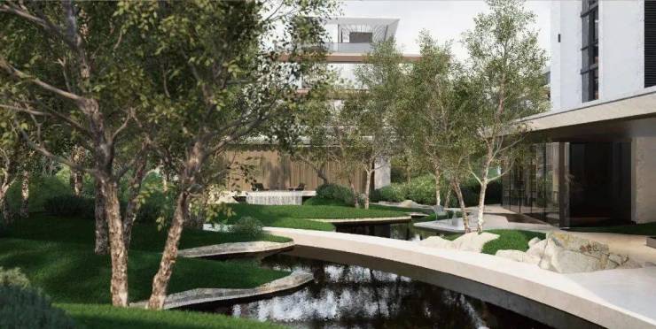 以自然水系为界,生长为独立的城市岛屿,通过六大景观节点,浮水之门、光之通廊、澄心水院、岸野森活、溪语花境、林语归岸,具象生活本应如流水般自在从容。