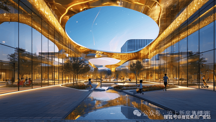 国际团队操刀建筑设计:现代简约风格立面搭配大面积玻璃幕墙,既保证采光通风又极具美学张力。单元门头以两层通高金属铝板打造,配合精致装饰纹理格栅,归家仪式感拉满。顶层流光溢彩的金色格栅顶,夜晚灯光亮起时宛如璀璨星河坠落人间。