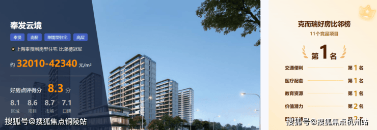 综合概述:克而瑞好房点评网指出,依托奉贤新城 “上海南部中心城市” 的战略定位与产业升级红利,项目长期增值潜力拉满,得分 9.80,是板块内价值潜力的天花板,稳居竞品第 1。