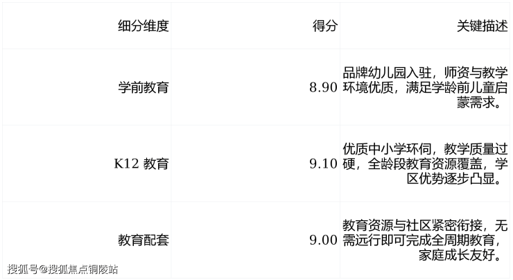 综合概述:项目周边教育资源优质均衡,全龄段教育体系逐步完善,教育资源得分 9.00,稳居竞品第 5 位,精准适配改善家庭子女教育需求。