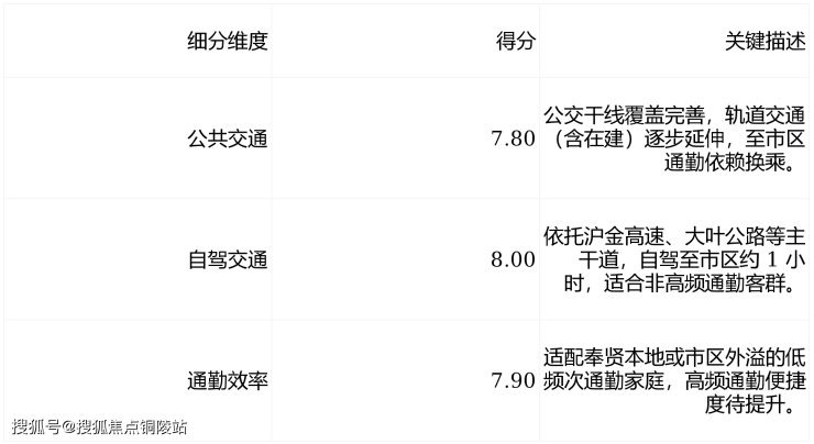 核心总结:一个以市场口碑、价值潜力、区域价值三项满分登顶的 “全能型红盘”,生活与医疗配套表现亮眼,仅交通便利度存在小幅短板,是奉贤新城改善置业的首选标杆。