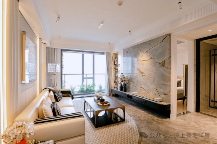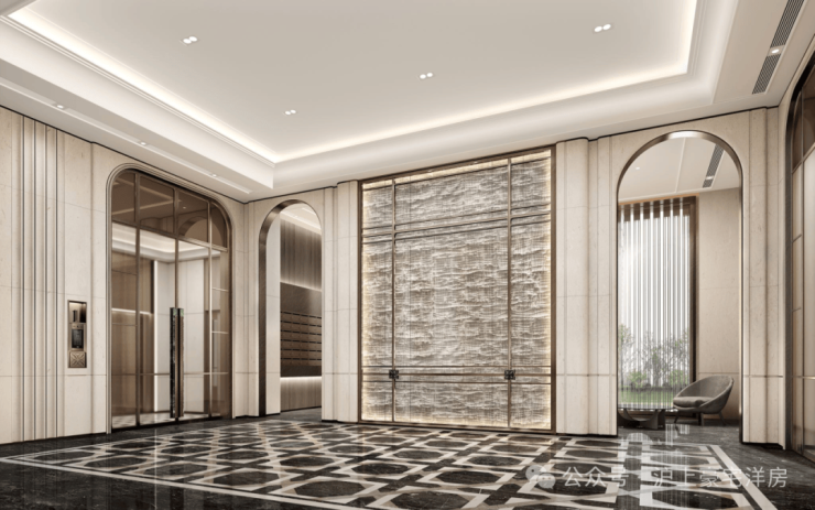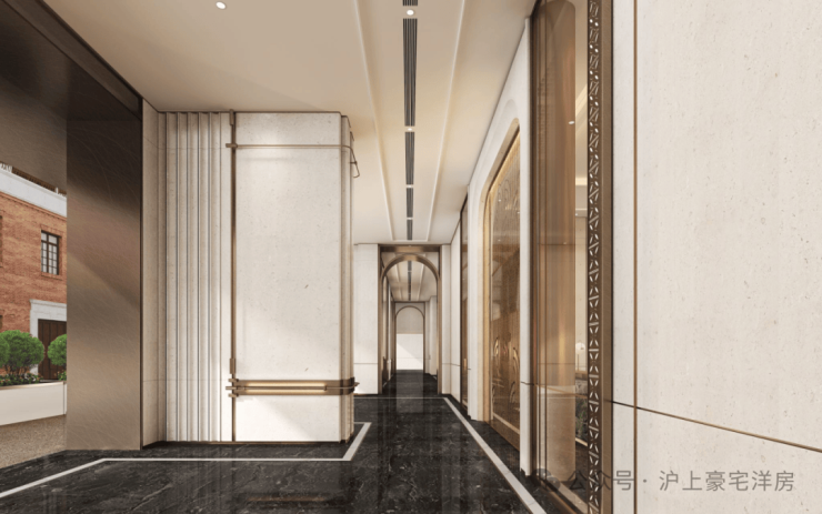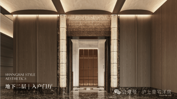公区设计,巧妙融入百乐门印象、沪西电影院等文化元素,将过去记忆植入场景。嘉佩乐酒店式门庭、琉璃光廊式车库、海派人文哲思花园,以“深度酒店化”营造归家艺术之旅。
