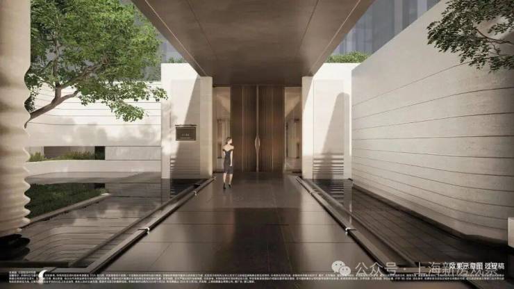 建筑立面上,项目萃取希腊柱式秩序感,以古铜色铝板、超大玻璃幕墙与灵动弧线的高端组合,窗墙比最大达0.35,呈现出温润典雅的质感。同时,秉持“揉石成缎”的审美理念,以温润隽永的弧度造型呼应海派河流意向,打造项目温润雅奢的气质美学,呼应在文化下长成的高端客群。