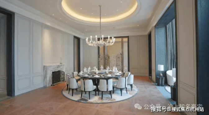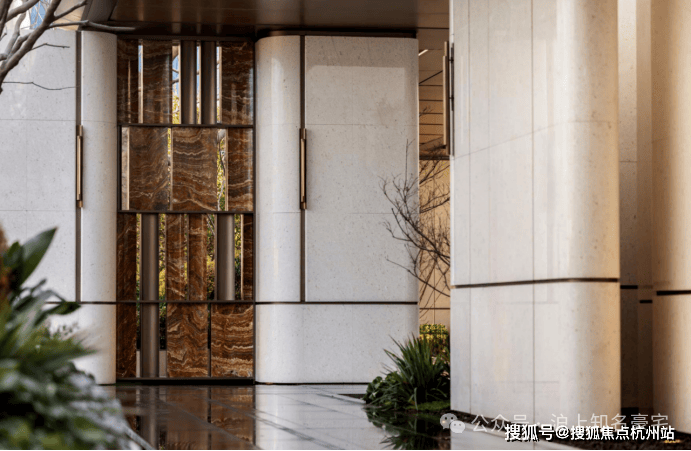 同时精奢细节嵌入,不仅室内高颜值,更保障了业主后期绝佳使用体验!管中窥豹:比如,定制铸铝门、专属奢石把手,进门后玄关地面设计了专属石材拼花,并定制通体玄关柜!