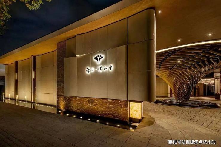 门庭延街外立面,以精工定制弧形米色石材为主调!镶嵌典藏级老虎玉大理石,点缀古铜色现代海派艺术感灯器,整体呈现出百年海派贵雅气质!