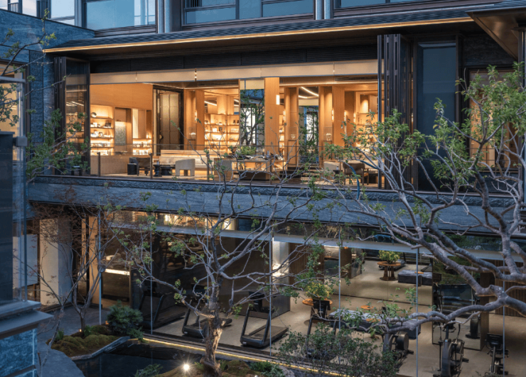 健身房:配备来自全球顶级奢侈品牌——美国的必确 (Precor)的顶级健身器械,整面落地玻璃引入庭院景观,让运动如同在自然中漫步。