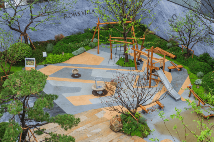 🔥🔥绿城逸庐官方售楼处电话:400-1010-064🔥🔥沿着景观轴向北,儿童乐园区基本已经完全呈现出来了。