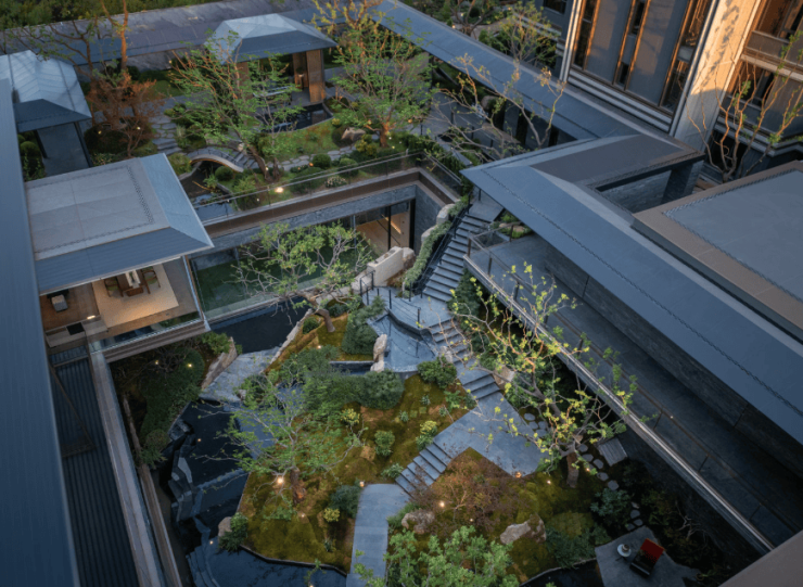 🔥🔥绿城逸庐官方售楼处电话:400-1010-064🔥🔥再往里走就是近460㎡的下沉式庭院,精选太行山金景石堆叠成小山丘,引进溪水汇聚成池塘,并移栽岭南珍贵的古桩铁冬青和中华原生乌桕树,形成一幅立体山水画卷。
