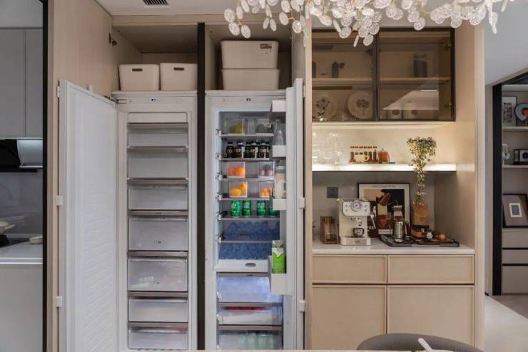 这个户型,绿城把收纳直接做满了,从玄关处的智能除臭鞋柜,到餐边柜甚至是厨房的收纳,处处都彰显着绿城把便利生活做到极致的决心。