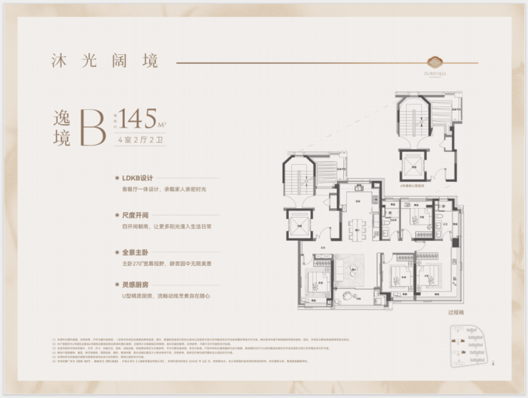 1、建面约145平户型热销且紧缺四房产品,类一梯一户设计,边套转角窗搭配超高窗墙比,采光通透,兼具功能与尺度的双重要求;