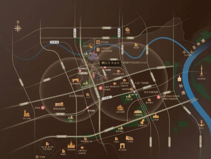 以人民广场为圆心,高浓度资源向外辐射开来,这里是一切繁华的坐标原点。