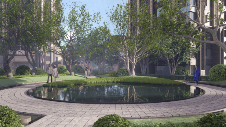 景观方面,项目规划了三大景观轴线+入户仪式轴线。