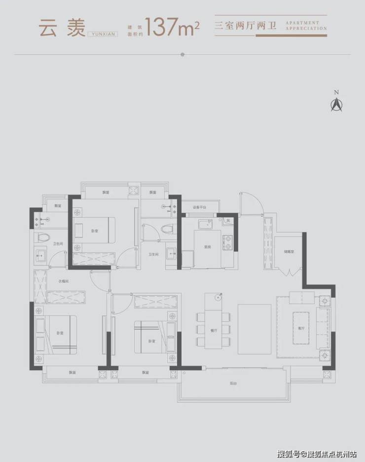 雅致三房:满足三口之家所需,北向房间可改造书房,理想生活一步到位