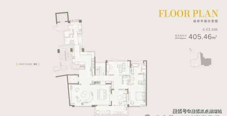 建筑形态:约405㎡云端复式大宅,上下双层设计,打造“垂直墅质生活”空间体验 。