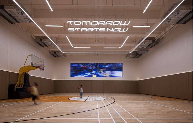 新盘罕有的「室内篮球场」,这单是一处先锋独到的场景搭建,专业级枫木地板搭配超7米室内层高,更为全龄乐活群体,围合出了一方在家楼下就能“拿球说话”的竞技场!