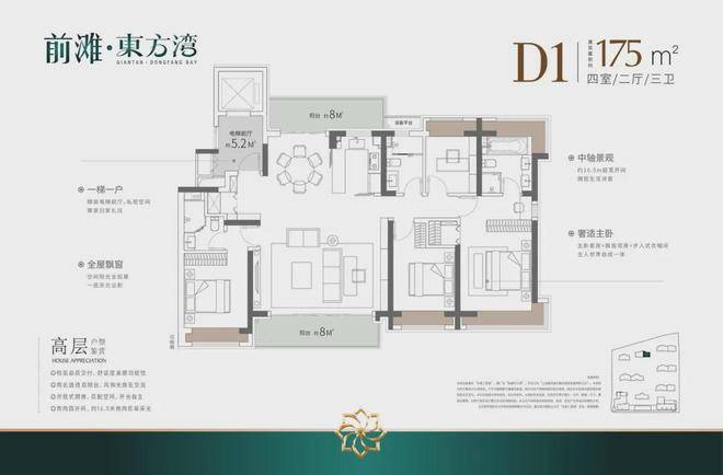 前滩·东方湾售楼处电话:400-9699-334✨【官方认证】✅✅✅建面约120㎡3房2厅2卫,做到了3开间朝南+双阳台+主卧套房设计+270°转角飘窗,居住体验、舒适度、尺度感倍增。