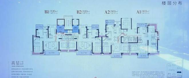 户型建筑层高3.1-3.15米,无连廊,双阳台配置。其中建面约103平户型2梯2户,其余一梯一户。