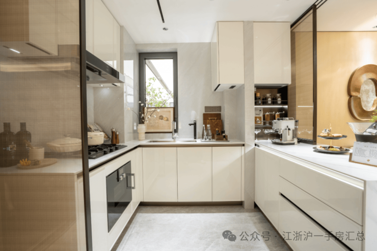 厨房装标以国际顶级家电品牌 嘉格纳 为核心,配备燃气灶、油烟机、蒸汽烤箱、嵌入式洗碗机、冰箱在内的 6件套 (或同档次一线品牌,下同),这一配置已达黄浦5000万级顶豪的装标。