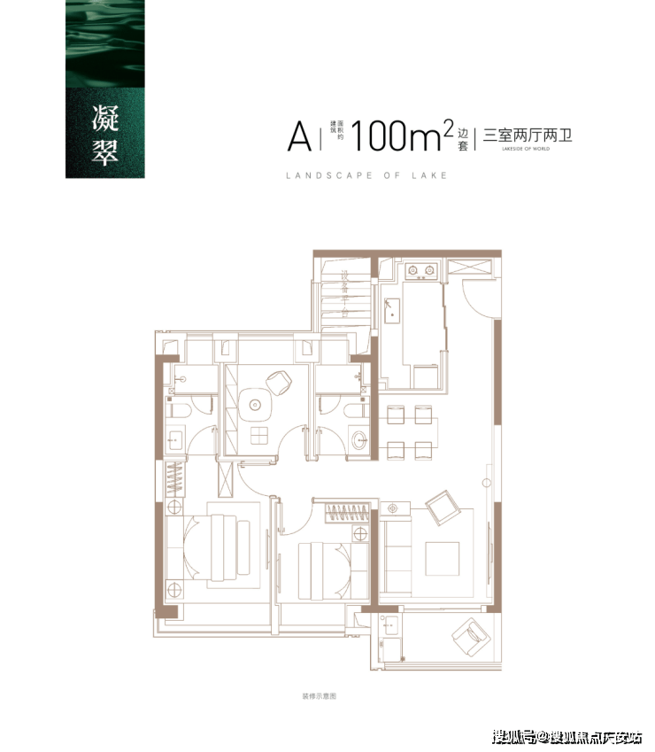 建面约100㎡A户型(边套)▼