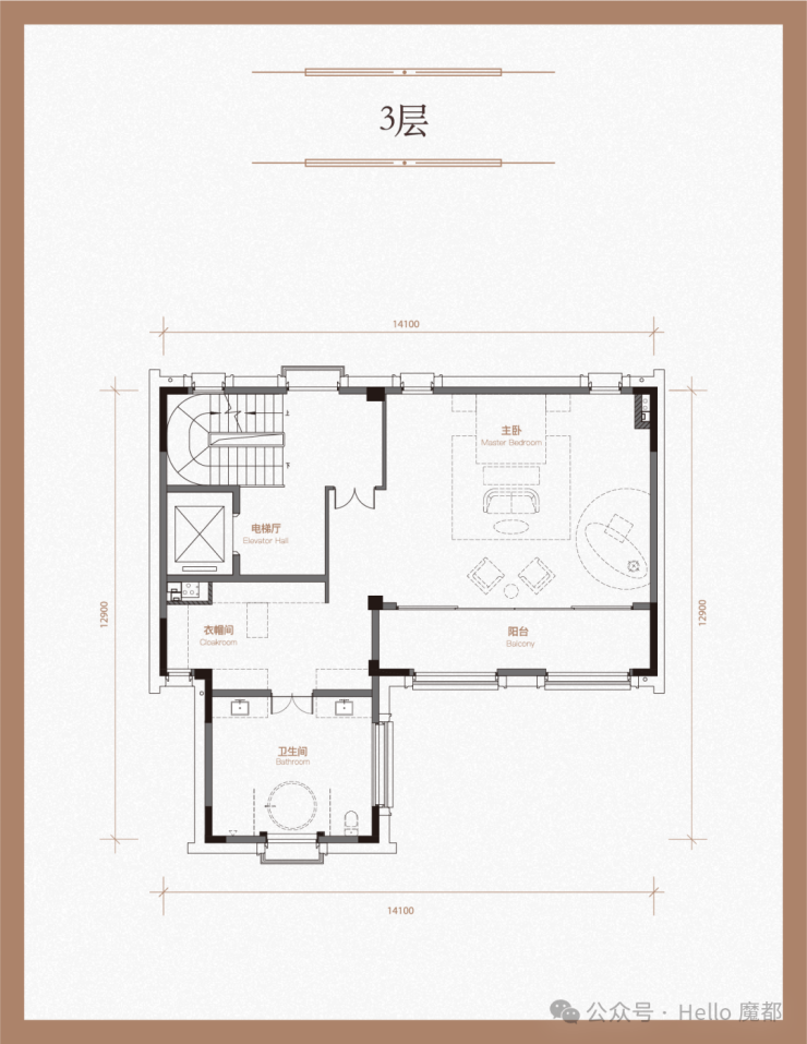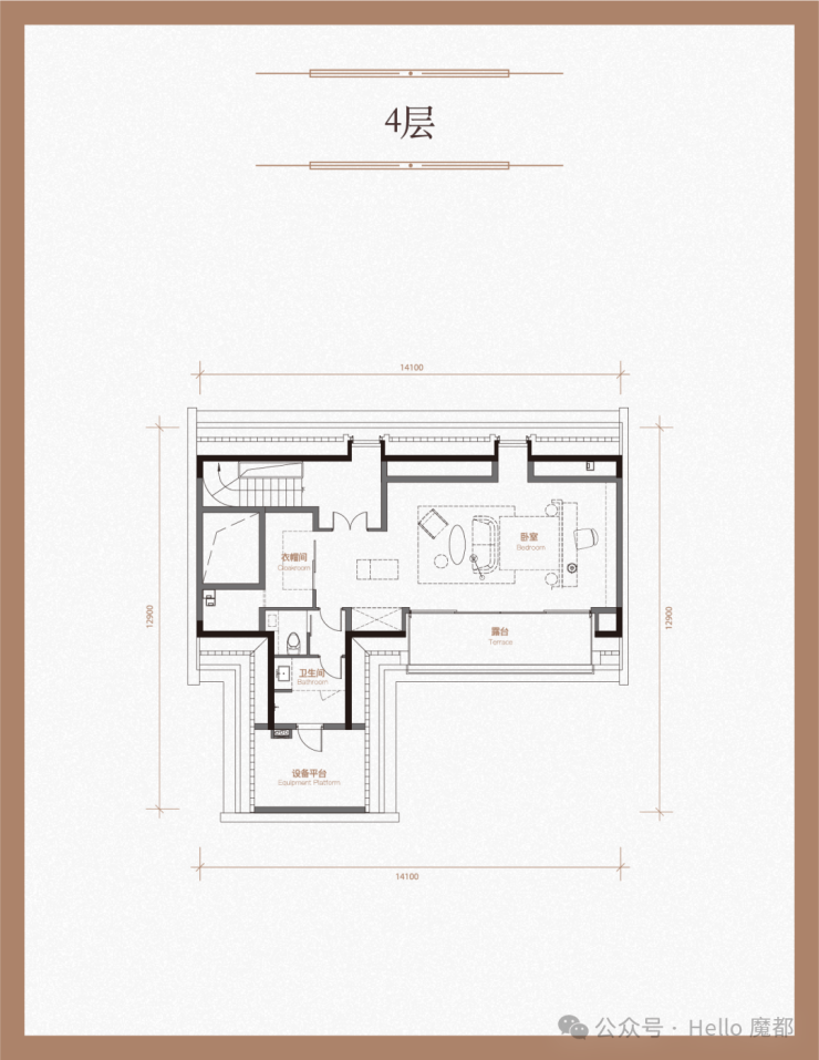 三层约3.5m、四层约3.6m层高,纵向空间感更显阔绰,舒居尺度跃然呈现。
