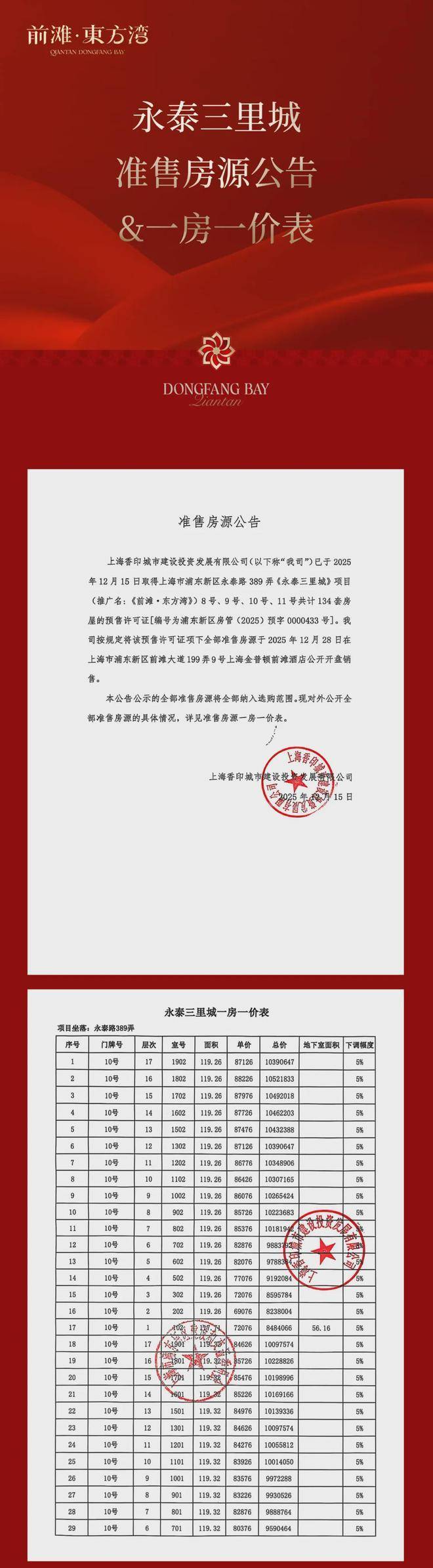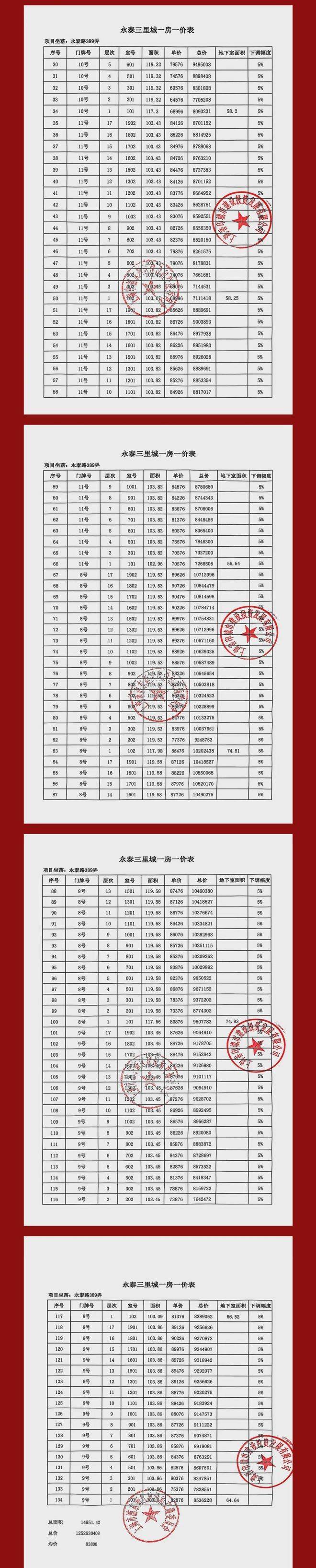 一房一价表: