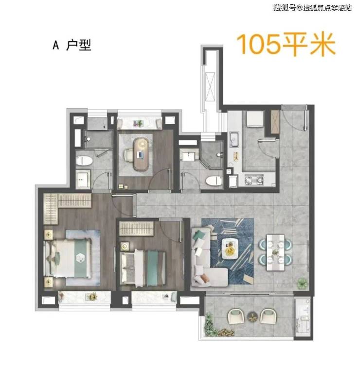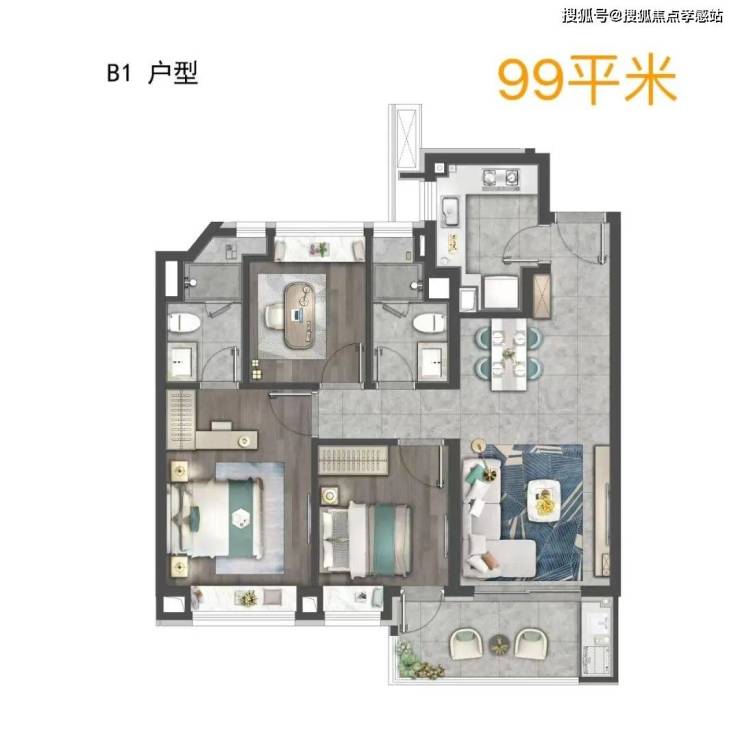 三卧舒适度均衡,均能做成完整卧室,避免了市面上99㎡普遍“2+1”的现象。