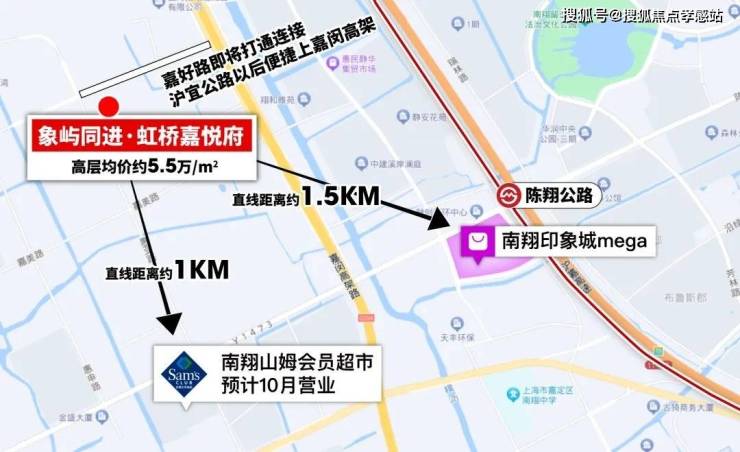 南侧约800米山姆会员店(在建);1.5公里南翔印象城Mega;