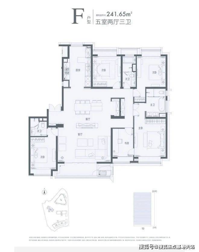 建面约241㎡5房2厅3卫户型,原先保留的房源现在对外出售!五年前的价格!单价仅11万!一步到位改善级豪华住宅,四代同堂无压力,2500-2700万级精品巨献!