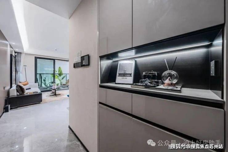 入户门设置玄关柜收纳体系,招商象屿·星耀翠湾预约热线☎:400-8080-420✅✅三段式设计,定制橱柜+石英石台面。