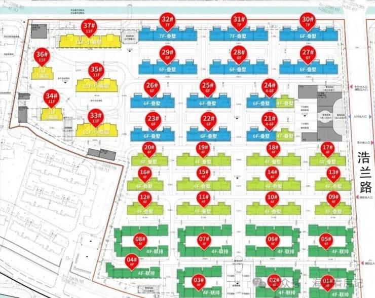 其中:02-09地块,占地面积约9.9万方,容积率1.01,由5幢11F小高层住宅、32幢4-7F多层住宅以及若干社区配套用房组成,共计规划约656套可售住宅;其中小高层住宅198套,4F鲁墅约128套,6-7F墅约248套,4F联排产品约82套!