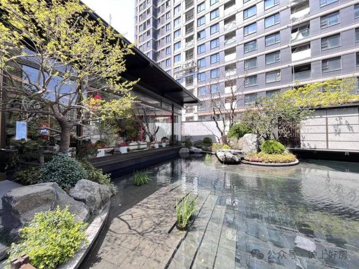 一条清韵石径,挑选造型独特的石头、三两组合成景,搭配特选的造型植物,极具艺术美感。而清泉石流景墙背后,就是未来业主的生活区。