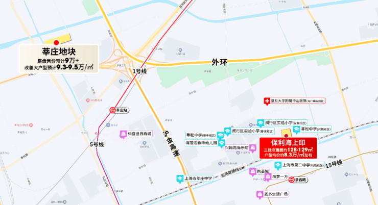 其次是教育,闵行实验小学和莘松中学是闵行公办的优质学校,与保利海上印几乎是门对门的距离。