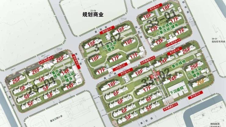 根据公示图显示,该项目的4个小板块最高层为项目东南角和西北角的26层高层,共有6栋,高度接近地块限高的80米(77.80米);18层的共有8栋;17层共有6栋;14层共有4栋;13层共有2栋;6层的共有4栋;5层的共有8栋。