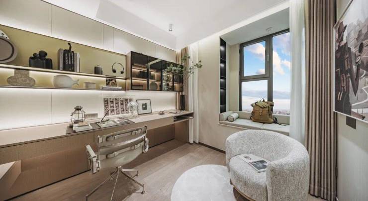 配合楼栋3-4面景观环绕的视野配置、最大38米的楼间距和通透玻璃幕墙搭配金属装饰线条的极简建筑风格,整体呈现出低调奢华的国际低密住区氛围!
