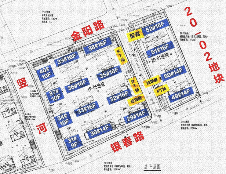 19-05地块规划:拟建7栋16F高层住宅、3栋9F高层住宅、1栋14F高层住宅、1栋10F高层住宅以及若干配套用房,规划住宅套数下限656套。