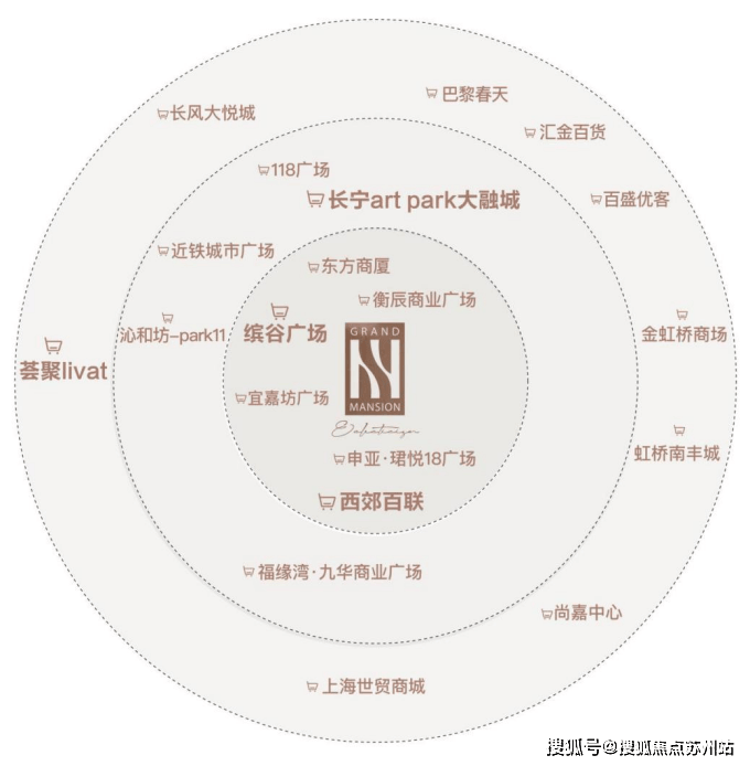 顶奢配套全新长宁国际生活圈:临近缤谷广场、百联西郊购物中心,东方商厦等老牌商业,3KM范围内涵盖金虹桥商场、上海荟聚、虹桥南丰城、尚嘉中心(LVMH集团投资)等超106万方商业综合体(*数据来源于百度地图测量及百度统计)