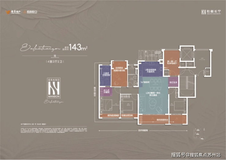 建面约143平4房2卫户型