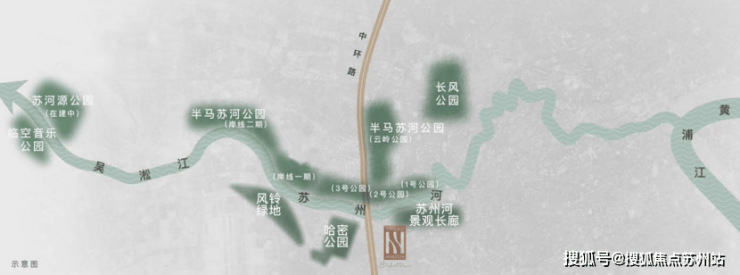 绿意栖居专属城市公园半径:毗邻哈密公园,风铃绿地、半马苏河岸线一期(在建中)及二期、苏州河景观长廊在侧,河岸漫步生活,城市自然回归。(*距离数据来源于百度地图测量)