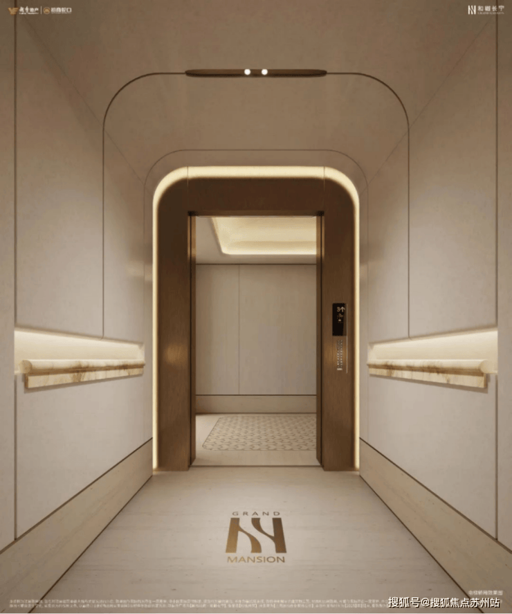 公区部分,基本以古铜色金属、暖色灯光和米色石材搭配,以“公区室内化”概念来打造更好品质体验;